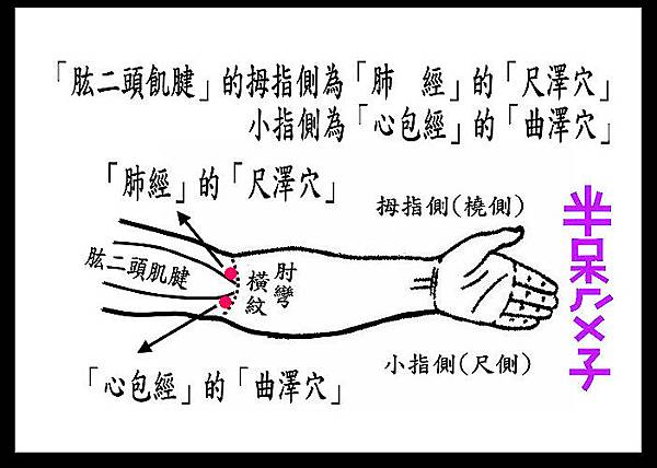 曲澤:位於肘橫紋中,當肱二頭肌腱的尺側緣。